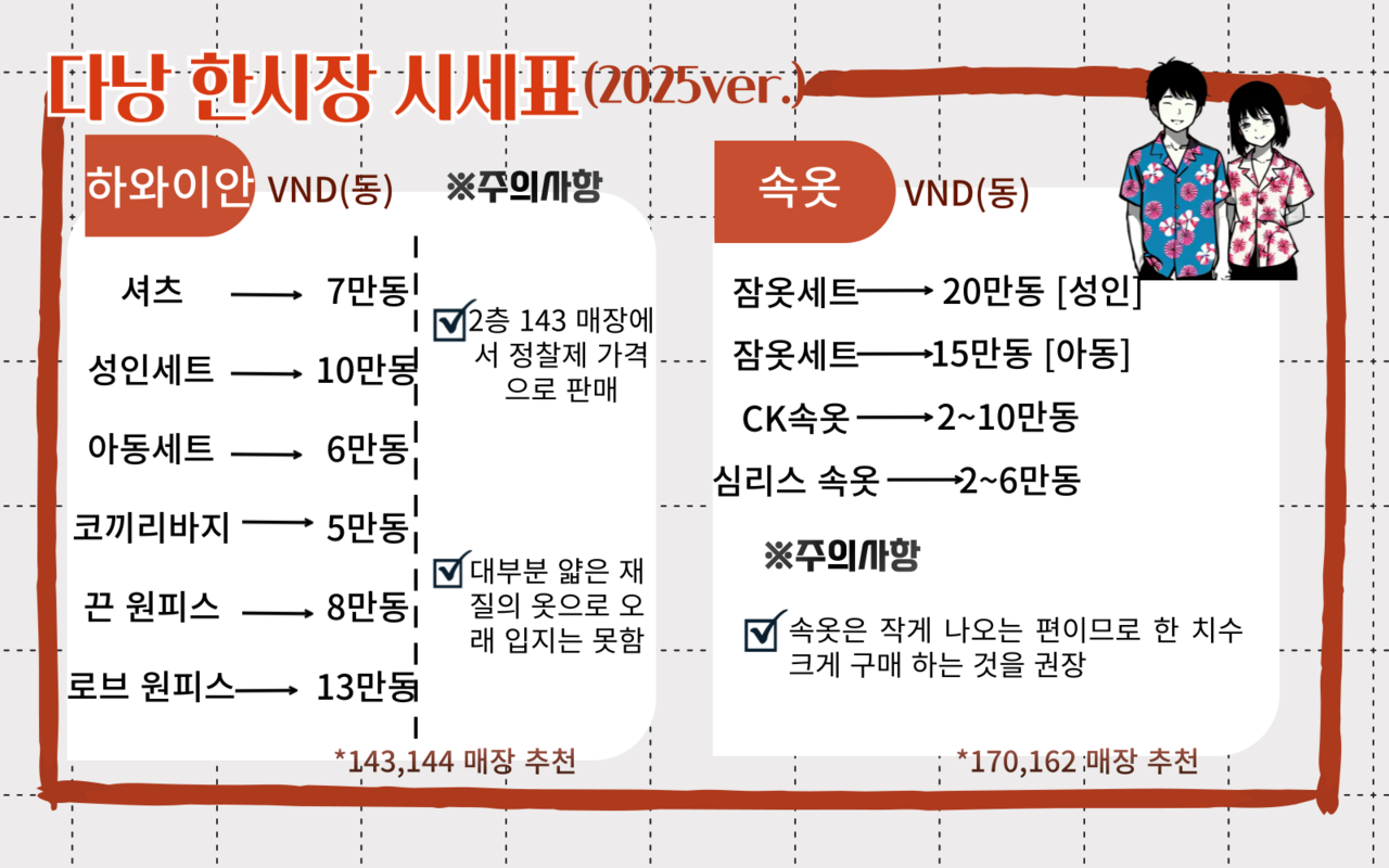 다낭 한시장 시세표는 캡처 또는 출력하여, 터무니없는 바가지 요금에 속지 않고 현명한 소비를 경험해보세요!
