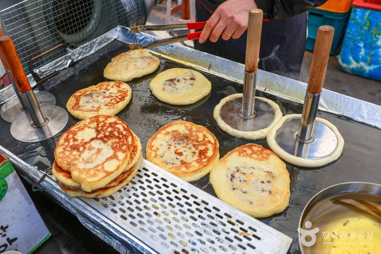 통통한 꽈배기와 쫀득한 찹쌀도넛은, 배가 불러도 나도 모르게 손이 가게 만드는 마성의 맛이죠. 갓 구워낸 국화빵, 따끈한 어묵, 쑥떡, 순대까지, 어느 하나 놓칠 수 없는 마성의 유혹같습니다.