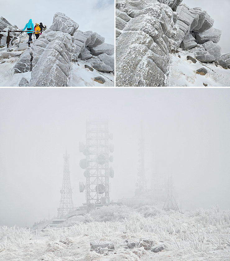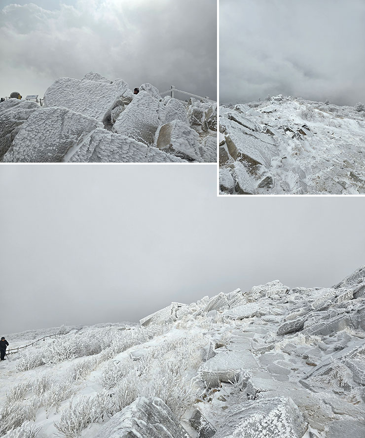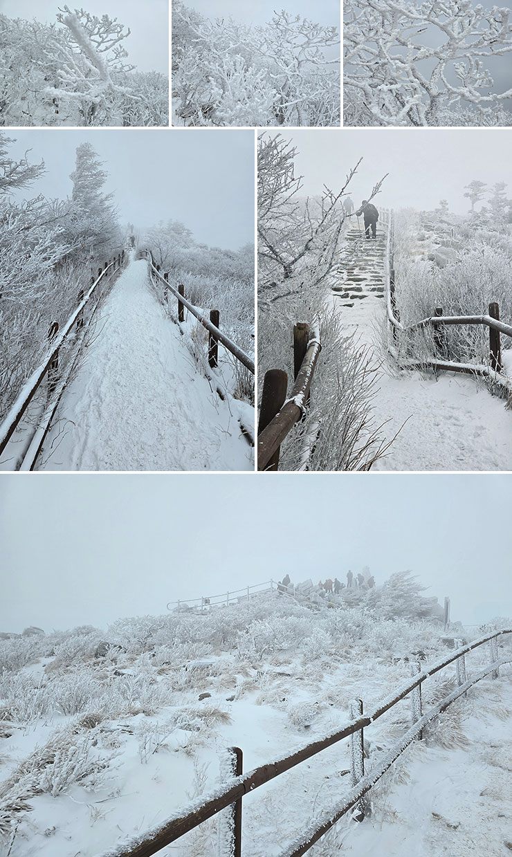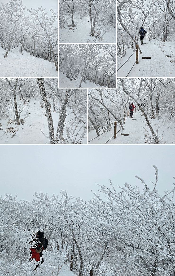 정상부에 오를수록 여기저기 피어난 눈꽃들.