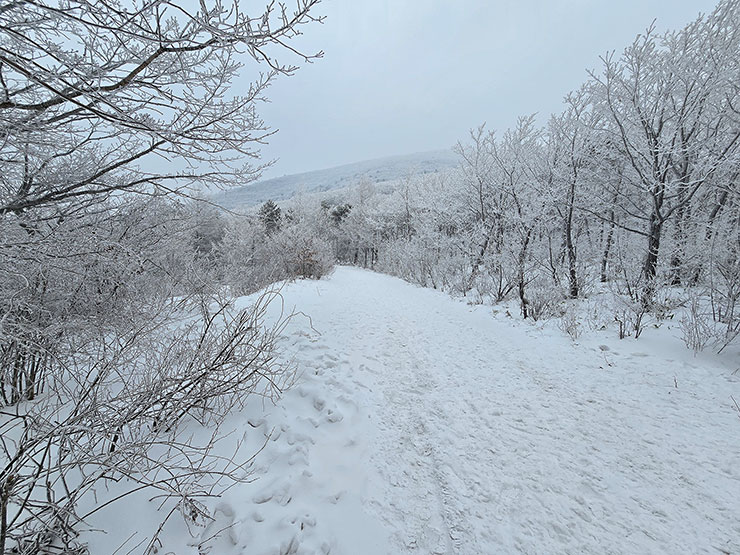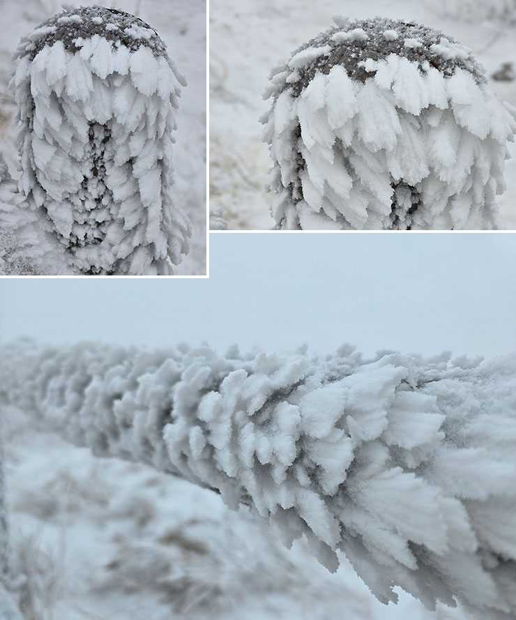 나뭇가지에 국한하지 않고 바람이 닿는 모든 사물에 눈꽃이 피어나니, 눈꽃산행이라 말한다.