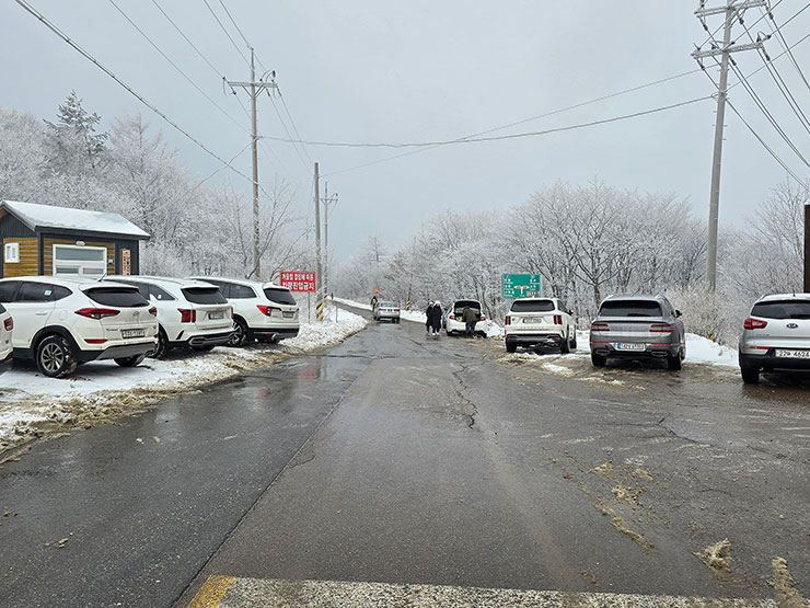 올라온 지 얼마 되지 않아 하산을 하는 태백산국립공원 함백산 최단코스이자 눈꽃산행 추천 코스다.