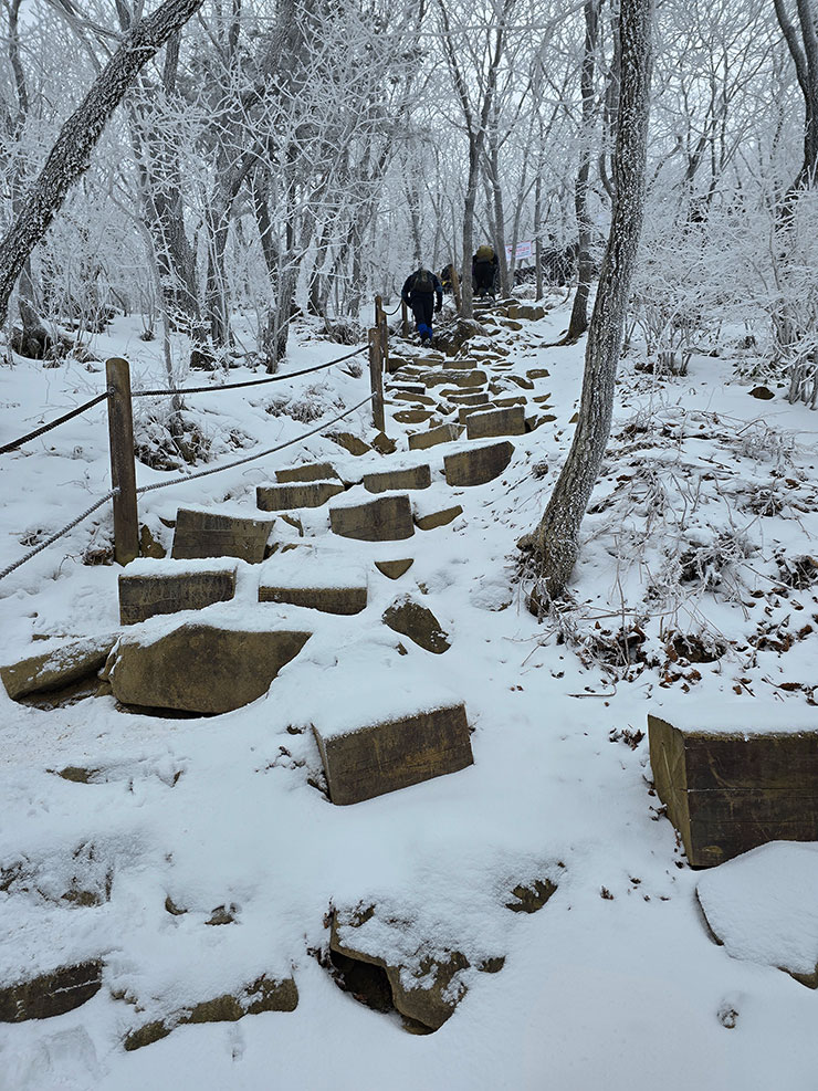 느긋하게 오르되 멈추지 않고 오르는 것이 컨디션 조절에 가장 좋다고 하는데 자신의 체력에 맞춰 여유롭게 걸어야 겨울등산의 묘미를 만끽할 수 있다고 생각한다.