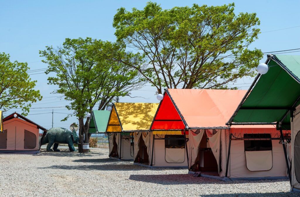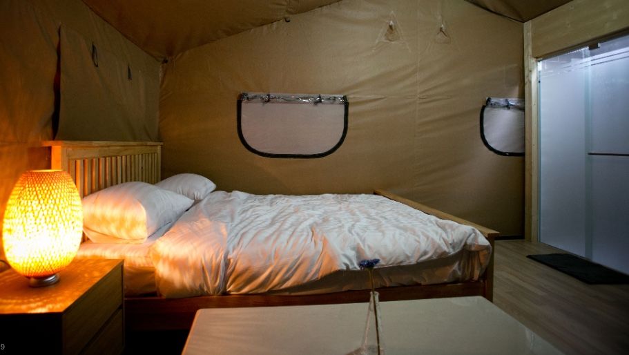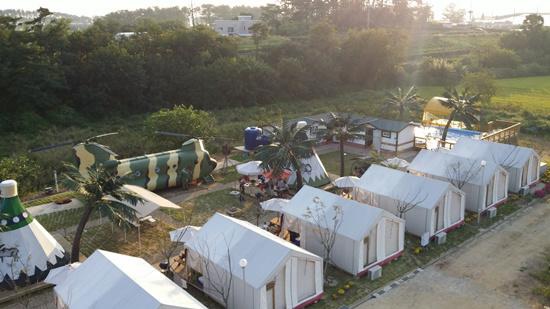 다음은 대부도 캠핑성입니다. 캠핑성은 글램핑이라는 이름답게 캠핑에 필요한 모든 장비가 세팅되어 있어요. 개별 화장실과 샤워실, 난방시설, 정수기까지! 없는 게 없어요. 대형 카바나도 보유해 가족 여행객들에게 추천해요. 또한 아이들이 즐길 거리가 다양해 특히 아이들과 함께 가기 좋아요. 사계절 온수 수영장과 트램펄린, 롤러코스터, 깡통 열차 등 유원지 부럽지 않은 규모에요. 찜질방도 있어 겨울에 가기 딱이랍니다.