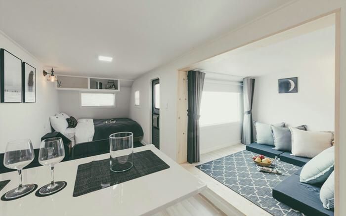 강촌 버즈글램핑은 가평역에서 10분 거리에 위치하여 접근성이 뛰어나 뚜벅이 여행자들에게 추천하고픈 글램핑장입니다. 최소 2명에서 최대 10명까지 머물 수 있는 다양한 객실 타입을 보유했어요. 특히 카바나 동은 최신식 글램핑 시설과 개별 화장실, 바비큐 시설, 후끈후끈한 온풍기까지 완비돼 있으니 겨울 글램핑 입문은 이곳이 어떨까요?
