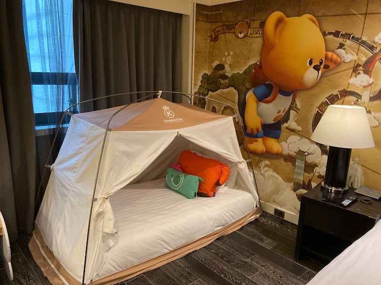 마이카 키즈, 포인포 키즈 등 컨셉에 맞게 꾸며진 객실이 있는 켄싱턴호텔이에요. 객실 현관부터 키즈존답게 꾸며져 있어요. 드림카 침대에서 자면 꿈나라 별나라 가기에도 좋을 것 같아요. 낙서 종이가 있는 책상과 소품이 많아요. 귀여움에 자꾸 미소 짓게 되는 객실이에요.