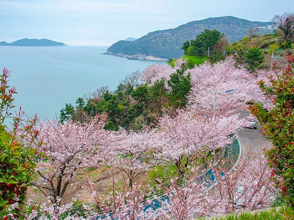 특히 해안도로는 높은 지대에 위치해 벚꽃과 함께 아래로는 반짝이는 바다를 바라볼 수 있어 봄이면 인기있는 거제 명소입니다.