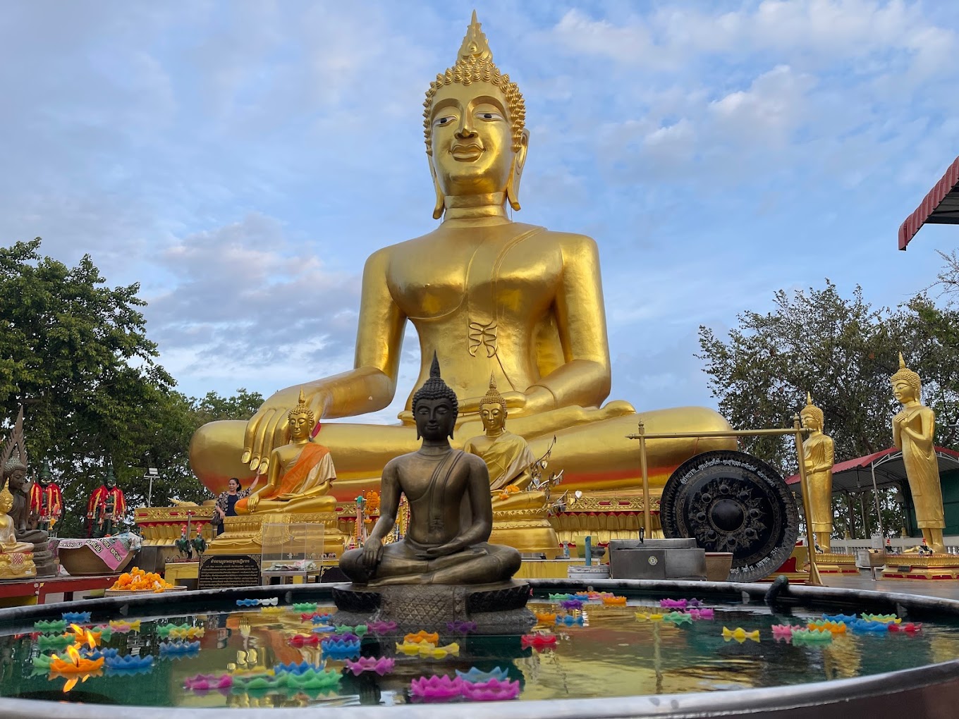 현지에서 왓 프라 카오야이로 알려진 이 사원은 매우 섬세한 황금 좌불을 중심으로 사원 단지가 조성되어 있으며, 많은 종과 향, 수많은 작은 조각상, 인상적인 주변 경관 덕분에 많은 방문객들에게 사색적인 분위기를 자아냅니다. 단순한 관광 명소가 아니라 현지인들이 기도하러 자주 방문하는 활발한 사원이기도 합니다.