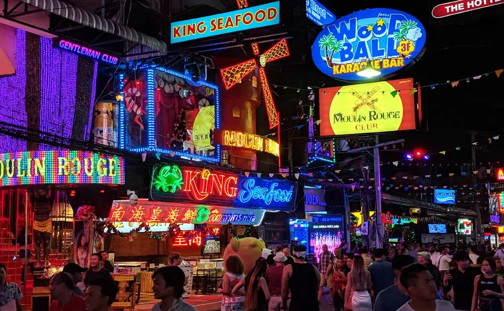 파타야시의 워킹 스트리트는 태국의 다른 어느 곳과도 다른 볼거리와 소리를 제공합니다. 태국의 다른 도시에서 '워킹 스트리트'라고 하면 보통 일반적인 길거리 시장을 의미하지만, 이곳은 그렇지 않습니다. 실제로 파타야 비치 로드 끝자락에 있는 500미터 길이의 재미에 필적할 만한 곳은 태국에서 거의 없습니다.