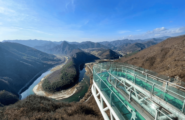 강원도 정선에 위치한 병방치 스카이워크는 ‘하늘 위를 걷는 듯한’ 경험을 선사하는 곳인데요. 이곳은 해발 583m 절벽 위에 세워진 투명한 유리 전망대에서 발아래로 펼쳐지는 협곡과 동강의 굽이치는 모습을 내려다볼 수 있는 특별한 명소입니다.