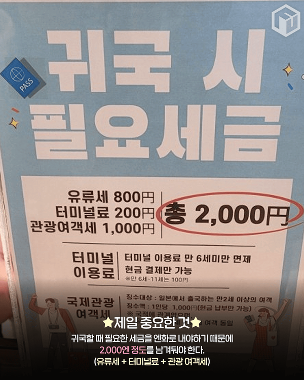 ✅여행이 끝나도 최소 2,000엔 필요! (귀국 시 입출국 세금)