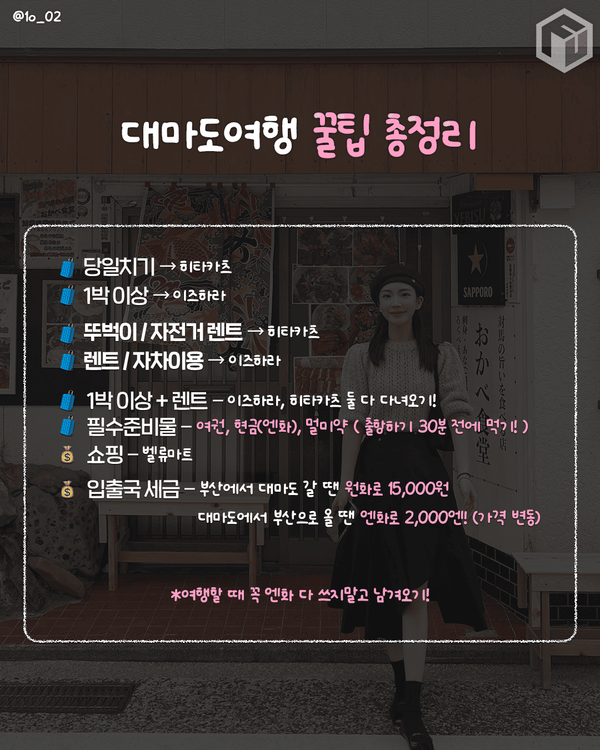 대마도는 가까우면서도 일본 특유의 분위기를 만끽할 수 있는 매력적인 여행지입니다. 이 꿀팁을 참고해서 더욱 편하고 알찬 여행을 즐겨보세요!