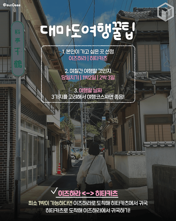 배편 예약부터 렌트카 이용, 필수 준비물, 가볼 만한 곳까지! 대마도 여행을 200% 즐길 수 있는 필수 꿀팁을 총정리해보았는데요! 대마도는 한국에서 가장 가까운 해외여행지이니 이번 휴일에 여행을 다녀오지 못해 아쉬웠던 분들은 대마도 이즈하라, 히타카츠 지역 여행 어떠세요?