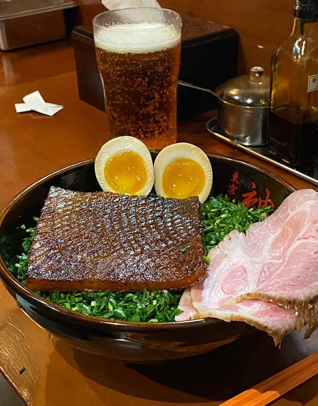 아부라소바는 일반 라멘에 비해 칼로리가 낮고, 중독성이 강하다 하여 '다이어트 라멘' '마약 라멘'으로 불리기도 합니다 칸다소바의 아부라소바는 사골을 직접 고아 만든 아부라(기름)와 야채 고명 및 각종 재료를 적절히 블랜딩해 묵직하면서 풍미가 깊은 맛이 일품입니다.