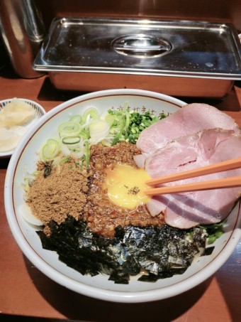 마제소바는 마제루(섞다, 비비다)라는 뜻에서 붙혀진 일본식 비빔 라멘으로 국물없는 면에 고기, 채소, 계란 등 다양한 고명과 소스를 비벼 먹는 라멘입니다 .