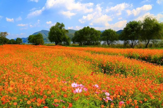 양평과 남양주 경계의 북한강변에 자리한 물의정원은 사계절 모두 그림 같은 풍경으로 유명합니다. 여름엔 코스모스와 해바라기, 가을엔 억새밭이 장관을 이루며, 아이들이 마음껏 뛰놀기 좋아요. 잔디밭, 산책길, 전망대가 조성되어 자연 체험과 포토존이 모두 만족스러운 곳입니다.