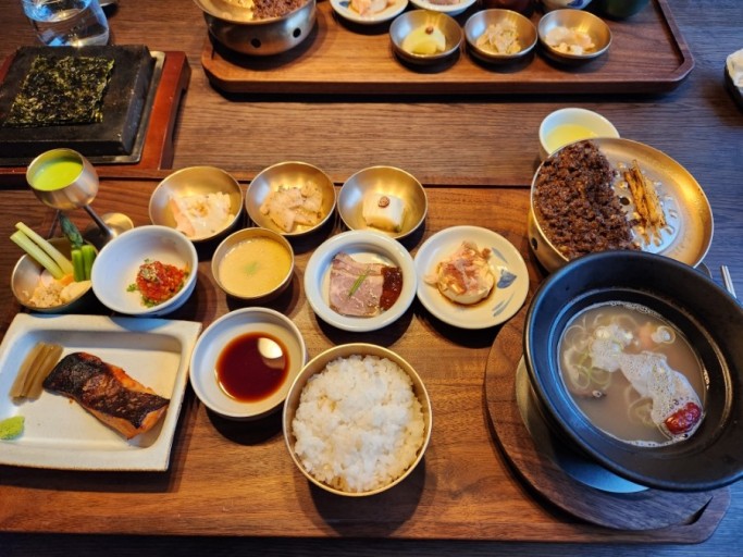 식사는 객실 수에 맞추어 모든 손님에게 프라이빗하게 제공되며, 10가지 한식 코스가 제공돼요.