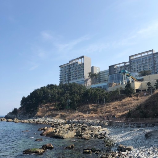 롯데리조트 속초는 북양양 IC에서 5키로 떨어진 곳에 위치해 있으며, 시원한 오션뷰와 산책로를 즐길 수 있다.