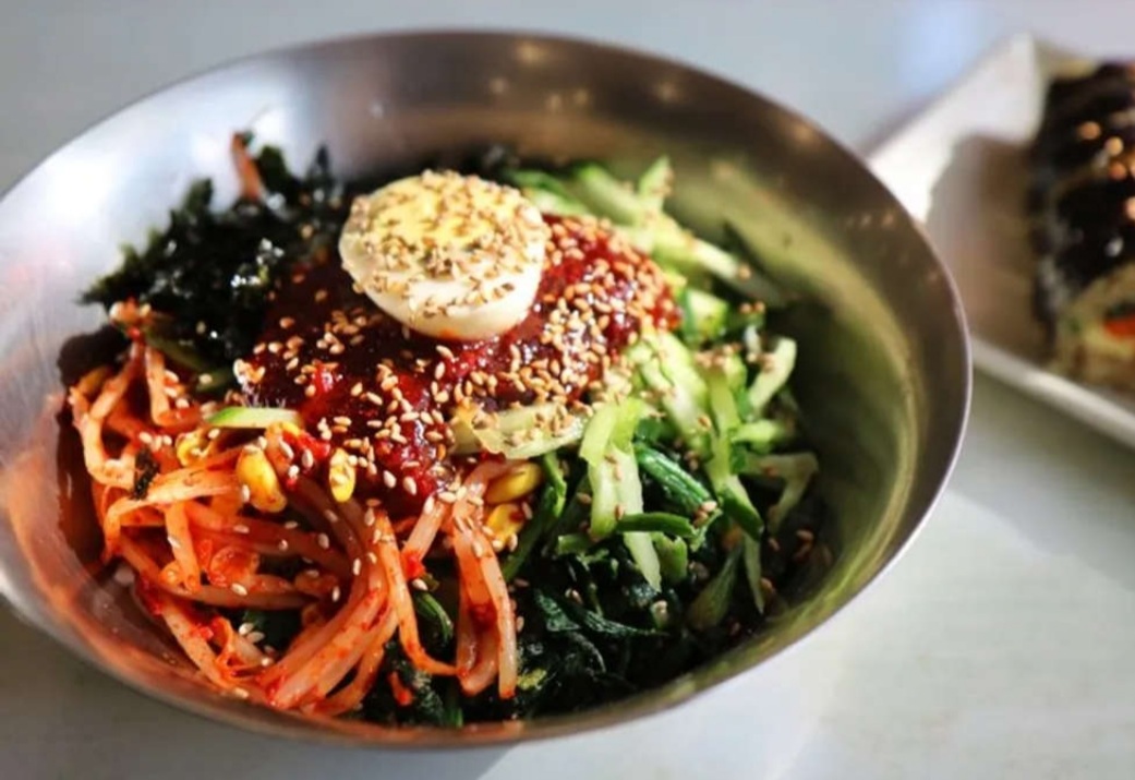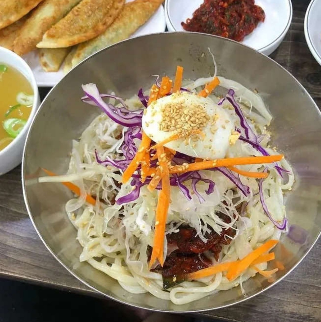 콩나물과 시금치에 달달한 양념이 어우러진 비빔쫄면, 명동 '명화당 명동1호점'