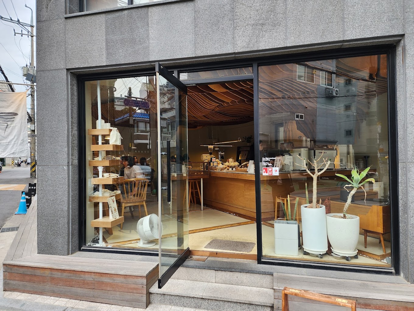 이곳은 제가 본 카페 중 가장 잘 디자인된 카페 중 하나입니다. 물결치는 천장은 모든 각도에서 흥미롭습니다. 이 작은 카페의 구석구석에 앉아 파도가 어떻게 움직이고 홈이 생기는지 보고 싶을 것입니다. 직접 만든 커피와 캐러멜을 맛볼 수 있는 정말 아름다운 공간입니다. 서울 홍대/합정 지역에 있는 카페 중 꼭 가봐야 할 카페 중 하나입니다.