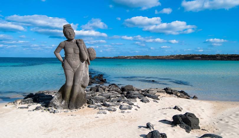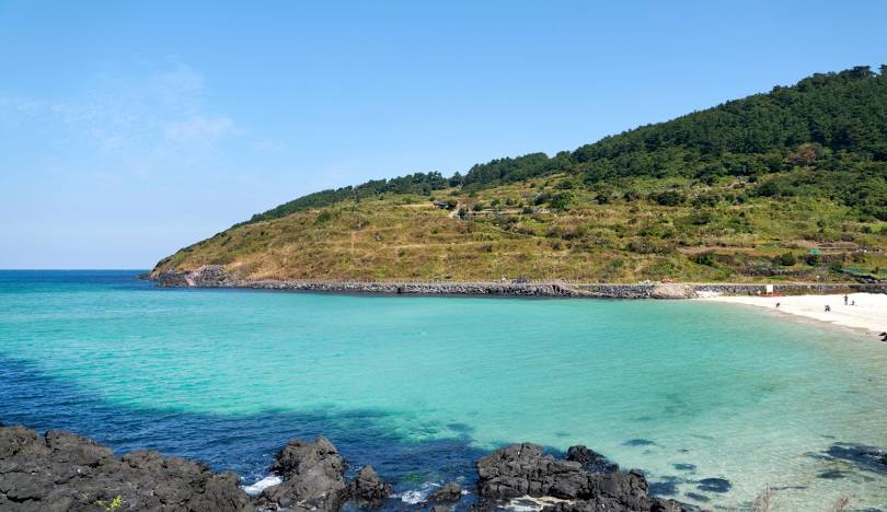 함덕해수욕장은 제주올레길 19코스를 따라 위치해 있습니다. 근처에 화산오름이 있어 함덕서우봉해변이라고도 불립니다. 제주국제공항에서 불과 20킬로미터 떨어진 곳에 위치한 이 해변은 에메랄드빛 바다와 키 큰 야자수, 백사장이 어우러진 멋진 풍경으로 유명합니다. 제주 3대 해수욕장 중 하나로 꼽히기도 해요. 해변의 서쪽 끝에는 물 위에 구름다리가 놓여 있습니다. 피크닉을 즐기기에 좋은 잔디밭과 해안 산책로 등의 편의시설이 있습니다. 특히 여름 저녁에는 밤바다를 즐기기 위해 많은 사람들이 찾습니다. 서우봉 화산분화구는 노란 유채꽃으로 뒤덮인 봄철이 아름답습니다. 정상에 오르면 맑은 날에는 한라산을 비롯한 주변 전경을 한눈에 볼 수 있습니다.