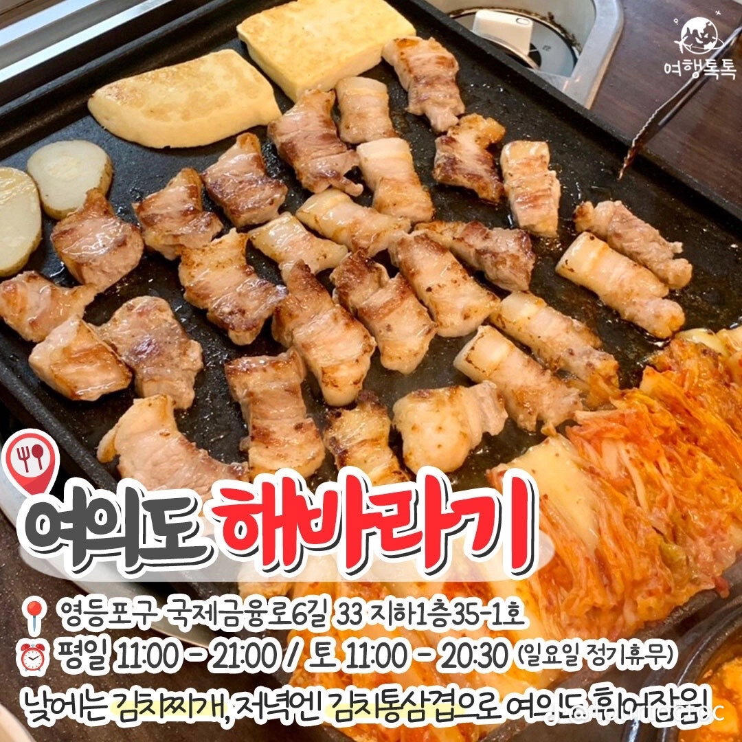 영등포구 국제금융로6길 33 B1 - 여의도 삼겹살집 기강 꽉 잡고 있는 해바라기! 여의도인들은 해바라기 모르는 사람 없다구..00 점심에는 찌개맛집, 저녁에는 고기맛집으로 문전성시인 삼겹살 맛집이에요!!! 조금 일찍 방문해서 웨이팅하는 일 없도록 하기!!
