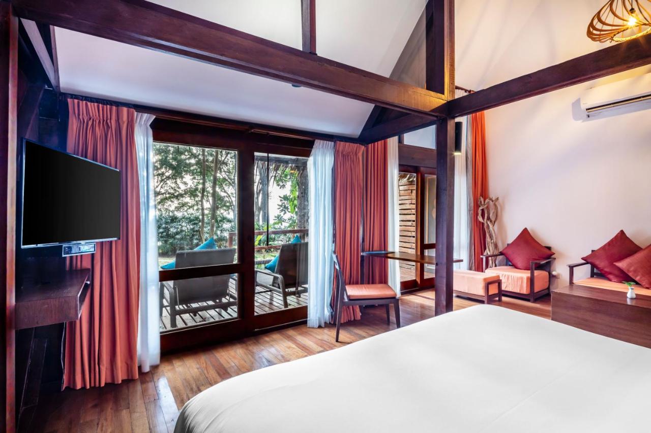 열대 우림으로 둘러싸인 바다에서 30 미터 떨어진 고급 호텔. 그 내부는 판자 바닥으로 덮여 있으며 많은 야자수와 이국적인 관목이 있습니다. 근처에 툭툭 정류장이 있습니다.