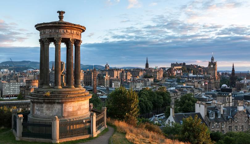 103미터 높이의 칼튼 힐은 에든버러에서 가장 높은 곳 중 하나입니다. 주황색과 보라색으로 물든 도시 풍경과 리스 강, 에든버러 성, 미완성이지만 상징적인 국립 기념물 같은 랜드마크가 어우러져 로맨틱한 일몰을 즐기기에 좋은 곳이기도 합니다. 칼튼 힐 꼭대기에 있는 다른 기념물로는 넬슨 기념비와 듀갈드 스튜어트 기념비 등이 있습니다.