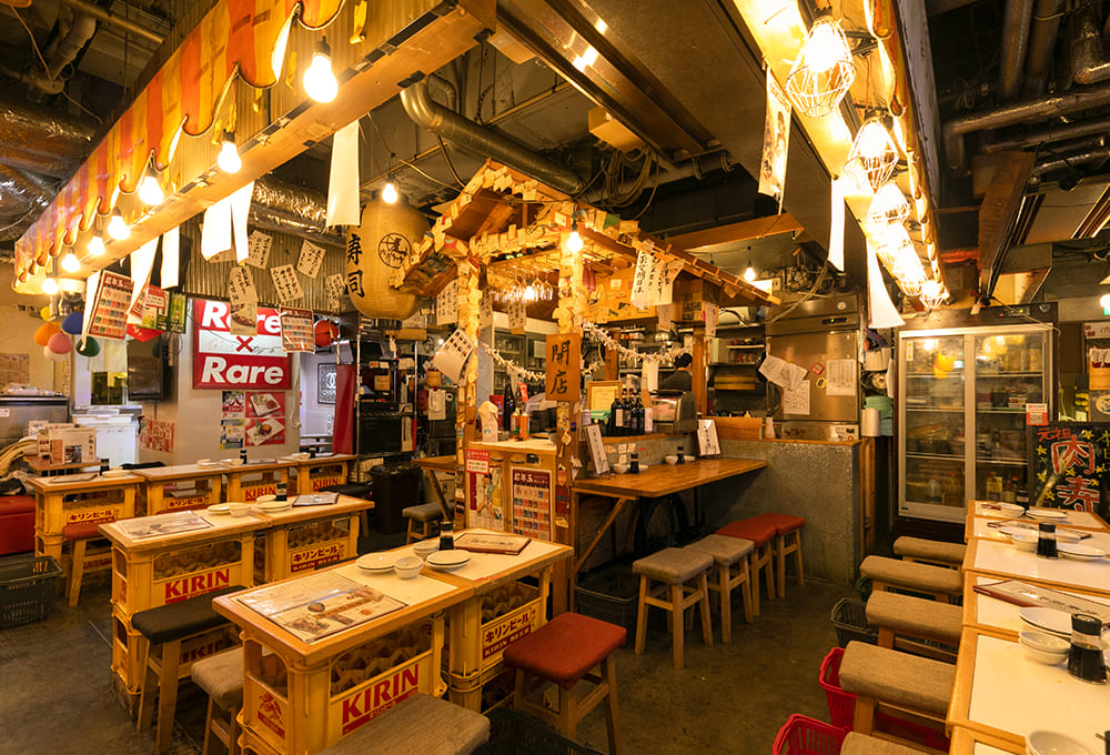 유라쿠초 역 의 고층 철도 아래 지역 은 바 지역 으로 유명 하다. 남성 직장인 들 에게 인기가 있는 저렴한 일본식 바 뿐 아니라 여성 고객 들 과 다른 사람 들 이 즐길 수 있는 세련 된 장소 도 있다. 쇼와 시대의 복고풍 분위기의 합리적인 가격의 바에서 맥주 또는 일본 술과 함께 즐길 수있는 사시미,조림 쇠고기 및 두부(니쿠 도후),삼겹살(모츠니),꼬치 치킨(꼬치 구이),감자 샐러드 등 고전적인 스타터를 꼭 맛보십시오.