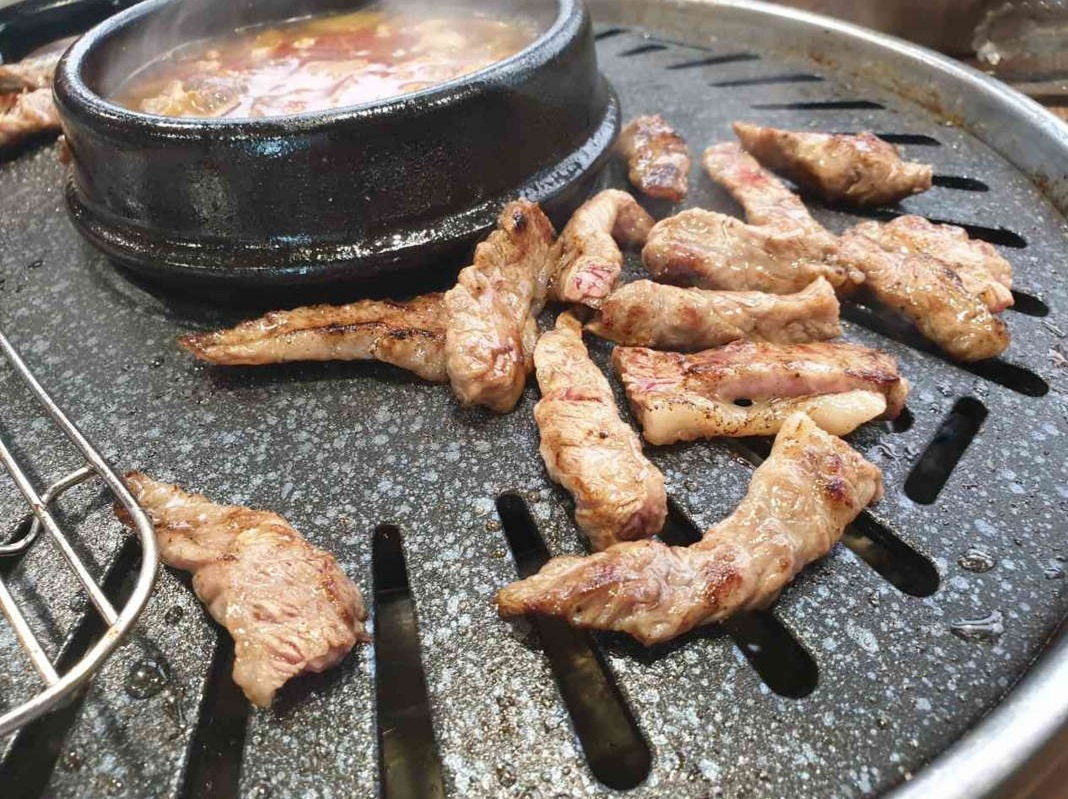 다양한 부위를 한상에 모두 만날 수 있는 세트메뉴가 가격대별로 잘 구성되어 있어 좋다. 고기가격의 거품을 최대한 뺐기 때문에 상차림비가 별도로 있지만 부담없는 수준이다. 불판 가운데서 된장찌개를 끓일 수 있고 건더기와 육수가 계속 리필되기 때문에 후한 인심마저 느껴진다.