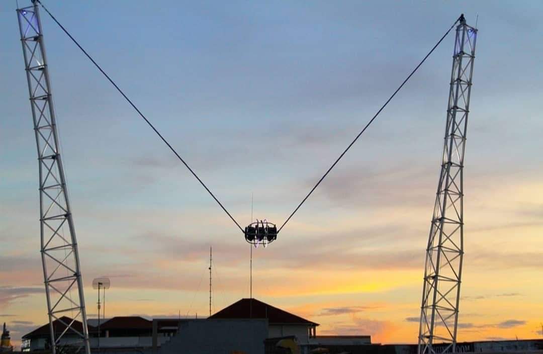 발리 리버스 번지는 레기안에서 아드레날린을 유발하는"리버스 번지"경험입니다. 당신은 단순히 뛰어 당신의 안전 벨트를 고정하고 200 킬로미터/시간의 경탄 속도로 공중에 높은 발사되는 형언 할 수없는 러시를 경험한다."승차의 가격은 얼마나 많은 사람들이 재미에 참여하고 있는지에 달려 있습니다.최대 3 명이 한 번에 이 스릴 넘치는 승차를 즐길 수 있습니다.