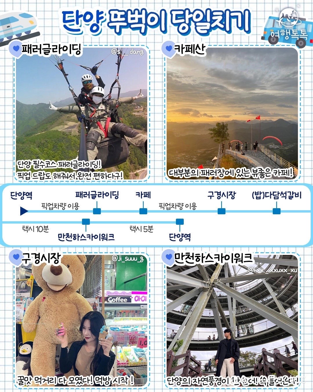 단양역 - 패러글라이딩 - 카페산-구경시장- 다담석갈비(밥) - 만천하스카이워크, 단양강잔도- 단양역 HD LTE+Il 84%