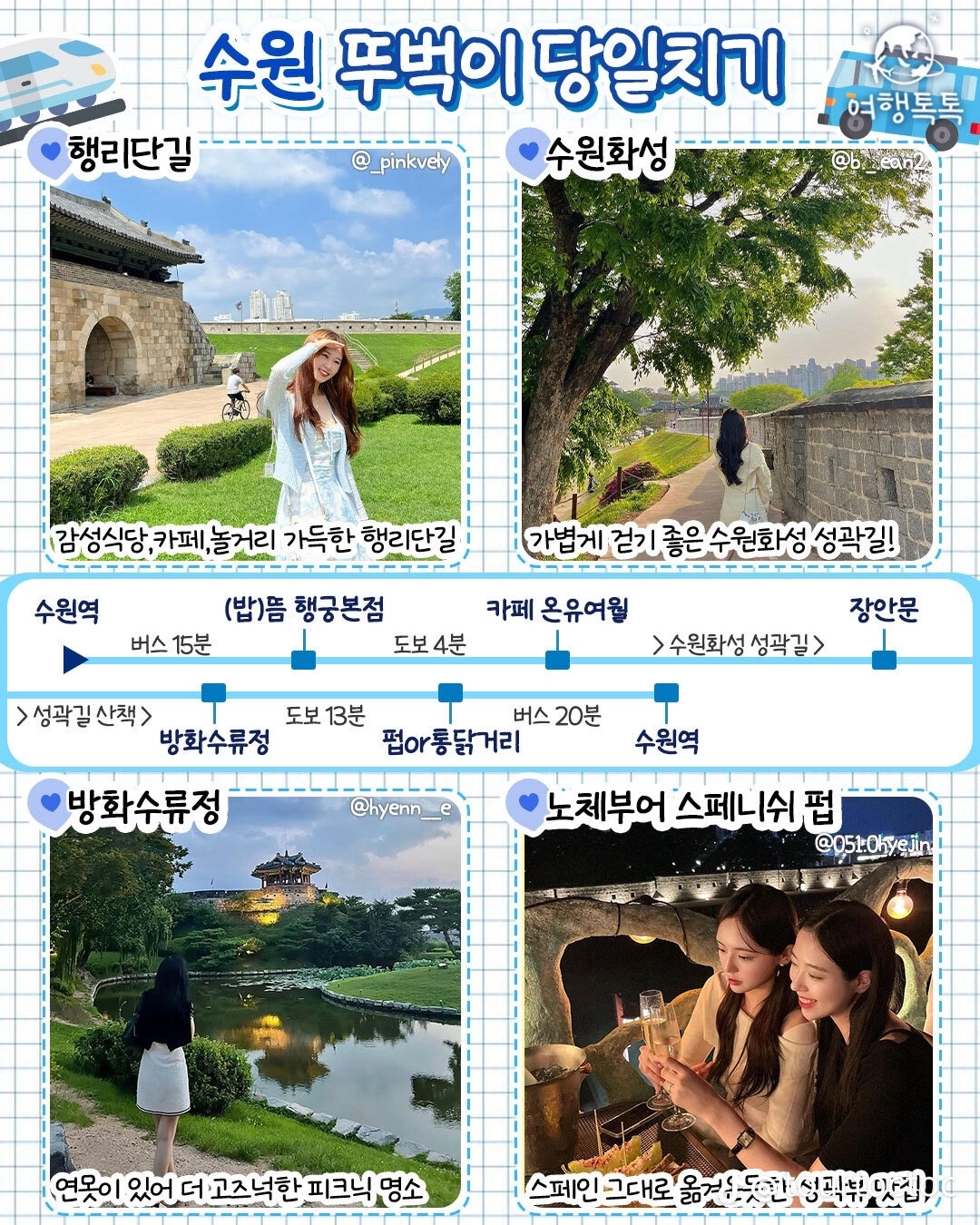 • 수원역 -뜸 행궁본점(밥) - 카페 온유여월 - [장안문~ 방화수류정 산책] - 펍or통닭거리 - 수원역