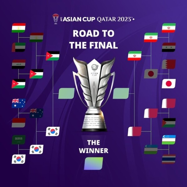2023 카타르 아시안컵' 4강 준결승전 대진표와 경기일정이완성됐다.