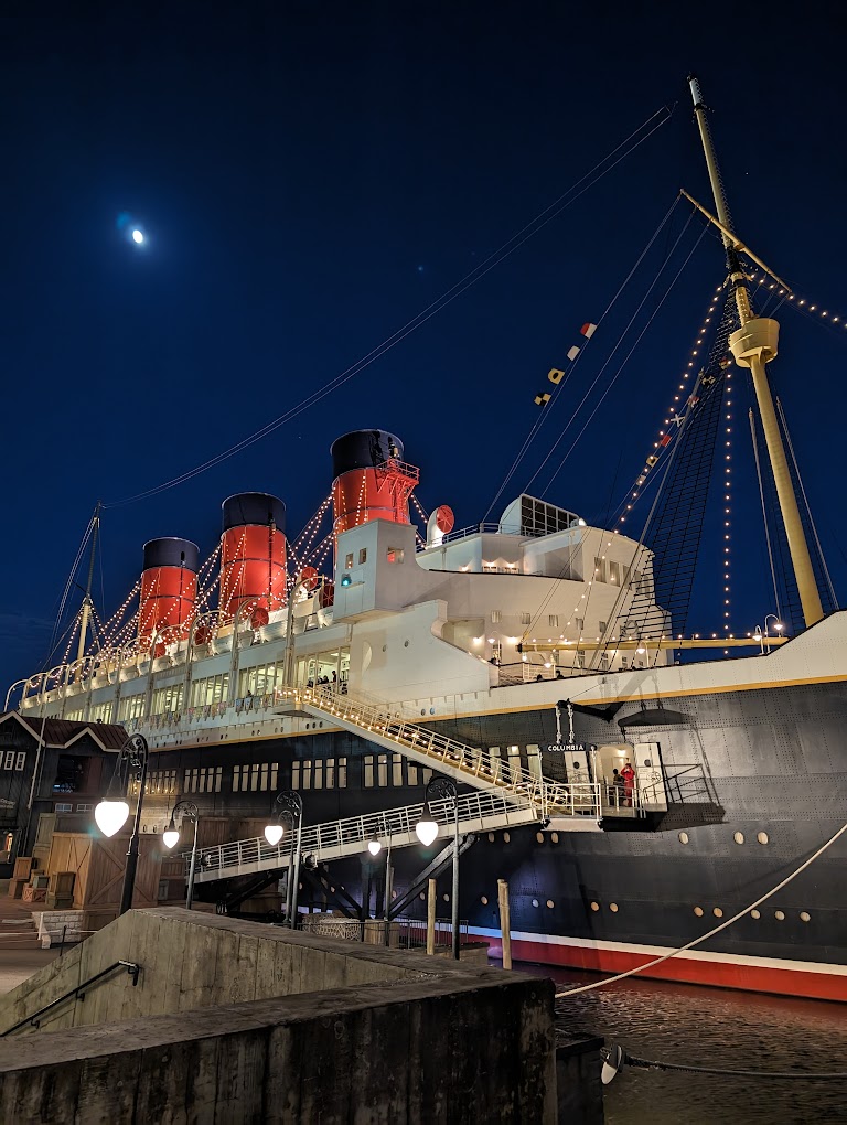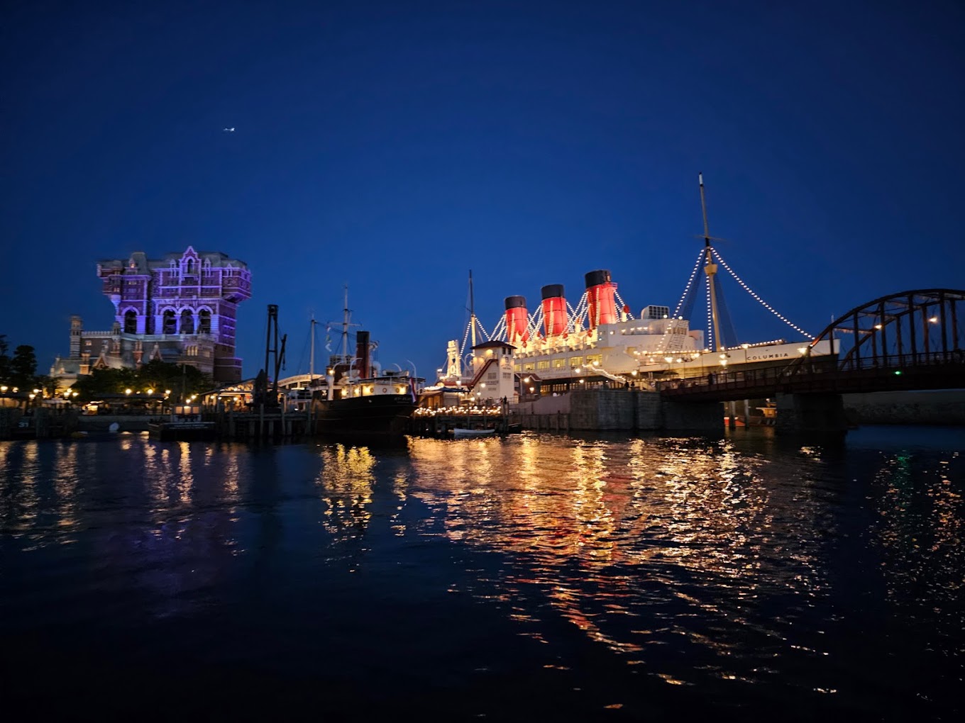 아메리칸 워터프론트 구역은 뉴욕, 뉴잉글랜드, 케이프 코드 주변에서 볼 수 있는 20세기 항구 도시를 모티브로 꾸며졌습니다. 이 구역에는 고가 열차, 미국식 레스토랑과 상점, 극장, 레스토랑과 라운지가 있는 S.S. 컬럼비아 증기선 등이 있습니다. 또한 타워 오브 테러 놀이기구가 있는 곳이기도 합니다.