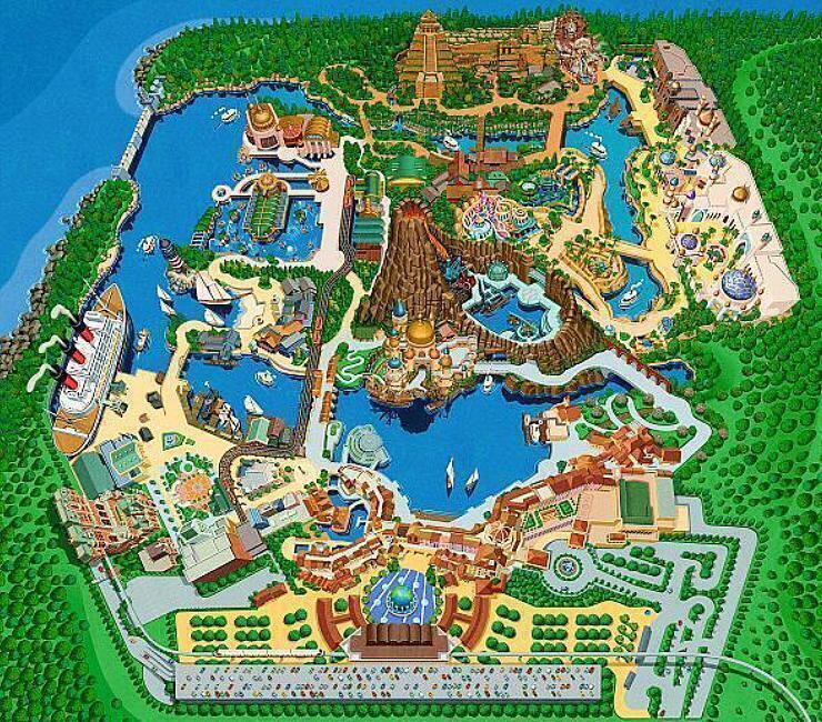 공원 중심부의 화산 안에 있는 신비한 섬은 쥘 베른의 공상 과학 소설 속 한 페이지에 나오는 곳입니다. 이곳에서 니모 선장의 잠수함을 타고 바다 속을 탐험하거나 과학 차량을 타고 지구의 중심을 여행할 수 있습니다.