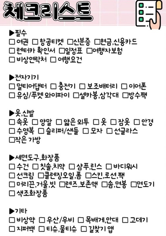 여행 짐싸기 꿀팁 준비물 체크리스트 총정리.