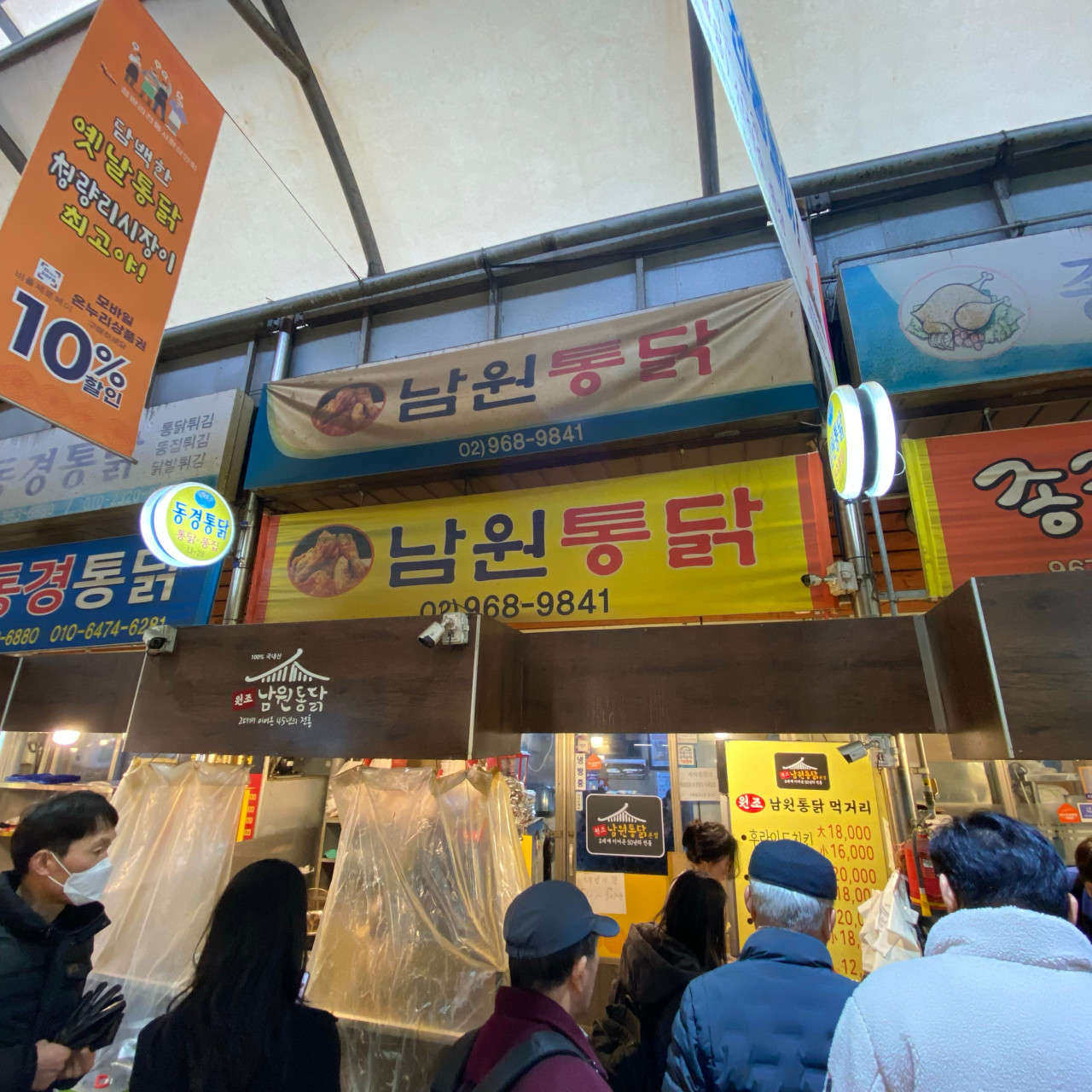 - 청량리 시장에 위치한 통닭거리는 통닭집들과 생닭집들이 쭉 붙어있다.