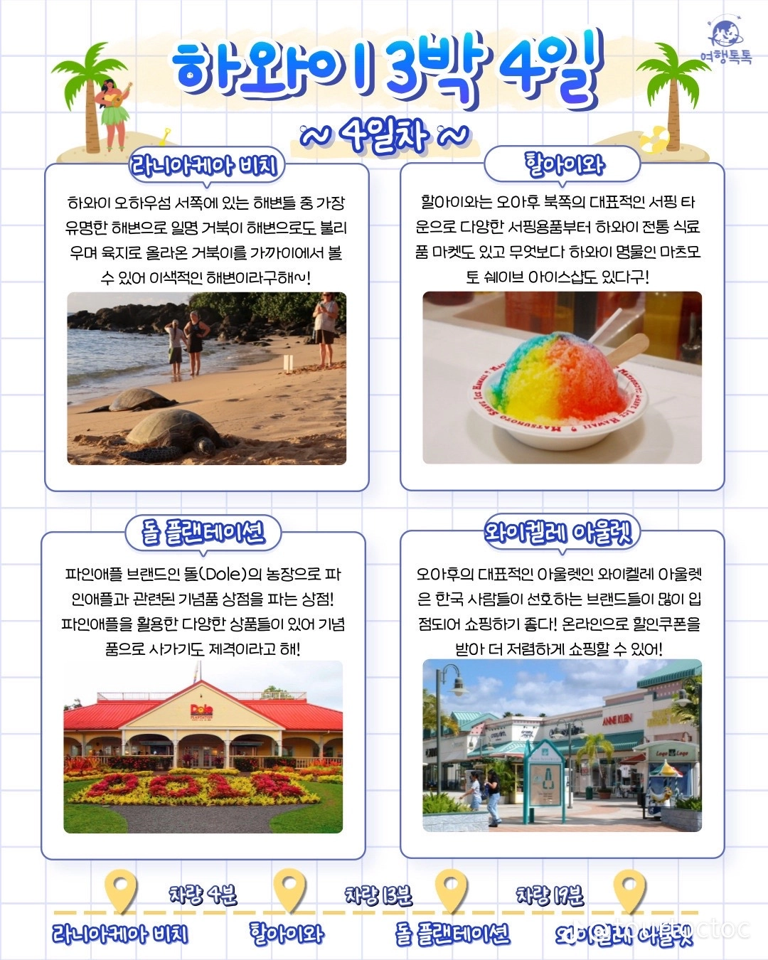 4개 섬으로 처음 방문하는 분들은 보통 오아후+이웃섬 1곳으로 코스를 추천
