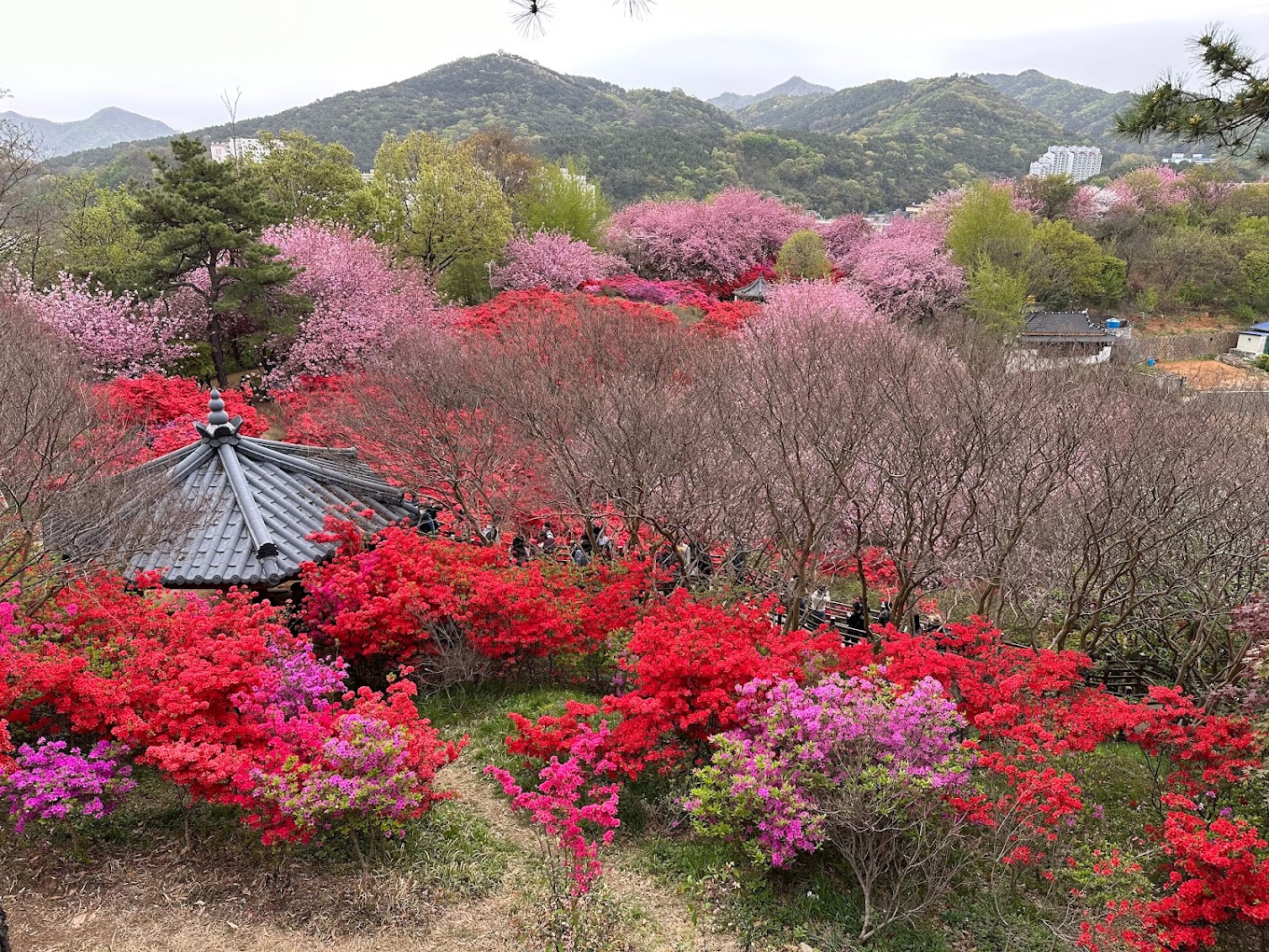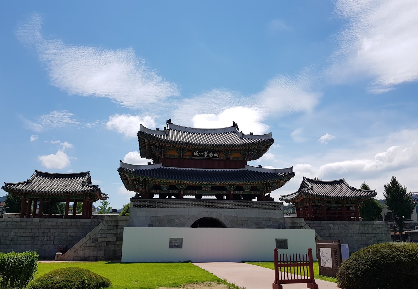 공원 으로 올라가는 길 에서,흥미 로운 비공식적 인 역사 를 가진 금송가지 바위 를 볼 수 있다. 또한 동학농민혁명 사적지에 세워진 동학농민군 전주 도착기념물을 만날 수 있다. 장군봉봉에 있는 팔각형의 파빌리온까지 올라가면 전주의 전경을 감상할 수 있습니다. 전주 시내,그 주변 산들,심지어 멀리 떨어진 모악산도 당신의 발 아래로 펼쳐질 것입니다. 봄에는 산 벚꽃과 진달래가 만개하여 아름다운 경치 속에서 봄 나들이를 즐길 수 있습니다. 지친 일상에서 벗어나 완산공원에서 자연의 신선함을 느껴보세요.