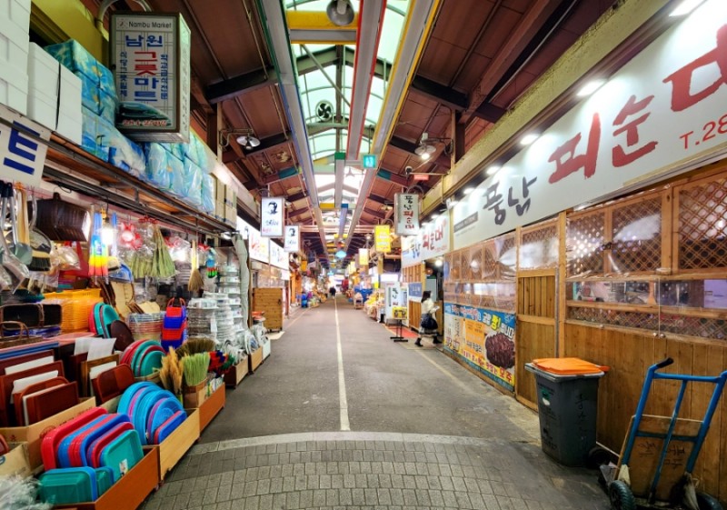 남부전통시장은 전주 한옥마을을 방문한 후 전주시민의 일상을 엿볼 수 있는 좋은 장소입니다. 전주향교,전동성당,경전신사,풍남문 등 인근 관광명소가 있습니다. 또한 100 년 역사의 장소로 현대 시대의 기쁨과 슬픔을 전주 사람들과 공유했습니다.