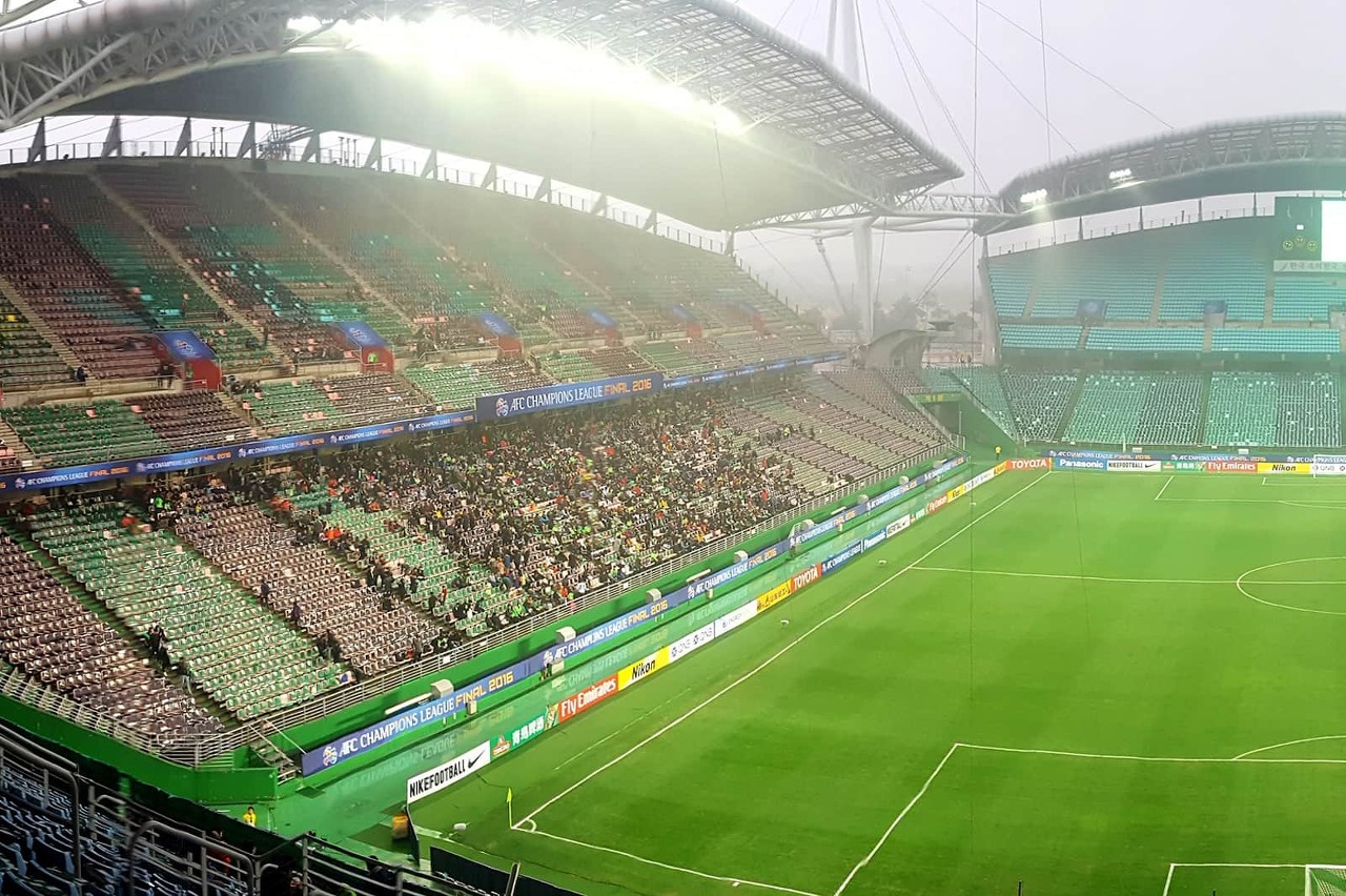 청주 월드컵 경기장은 2002 년 월드컵을 개최하기 위해 건설된 축구 경기장이다. 오늘날,전북 현대 모터스의 홈 경기장으로 사용되고 있으며,여기에서는 축구 경기를 가까이서 볼 수 있습니다. 역사의 도시로 잘 어울리는 전주에는 합주선 함선과 소트대를 상징하는 기둥과 지붕을 지탱하는 가야금 12 줄을 상징하는 케이블이 있는 경기장이 있다. 입구는 요새 문처럼 생겼기 때문에 현지인들이"정주성 요새"라고 부른다.