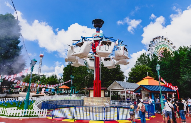 공원에는 또한 여러 개의 대규모 엔터테인먼트 명소가 있으며,그 중 많은 곳은 인기 있는 애니메이션 시리즈를 기반으로 하고 있으며,여러 개의 미로와 유령의 명소가 있습니다. 또한,차컵,해적선 및 드롭 타워 타입 타기,페리스 휠,카루셀 및 스카이 스윙과 같은 다양한 전통적인 놀이가 있습니다. 레스토랑,좌석 공간,기념품 가게 및 카니발 게임이 공원 주변에 펼쳐져 있습니다.