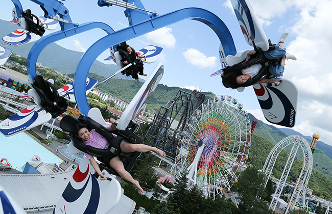 트윈 시트 스윙에서 59 미터 높이의 강철 타워를 반복적으로 오름차순으로 돌립니다. 하늘을 통해 비행의 짜릿한 느낌과 회전 전망이 될 수있는만큼 흥미 진진한입니다!