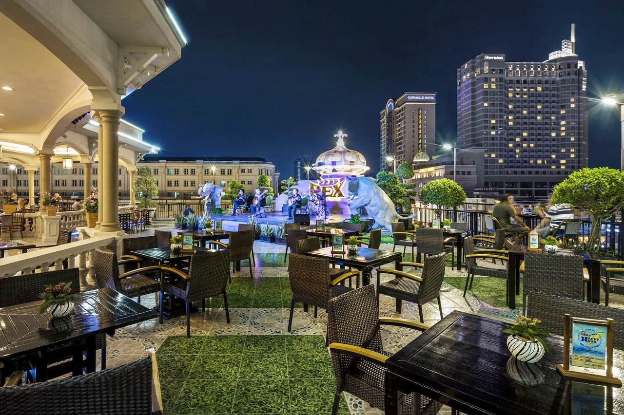 렉스 호텔 사이공의 옥상 정원 바는 사이공 오페라 하우스와 인민위원회 홀 등 베트남의 프랑스 식민지 구조의 숨막히는 전경과 겸손한 높이를 만든다. 5 층에 위치하고 있으며,또한 높은 무대와 댄스 플로어를 갖추고 있으며,오후 8 시부터 라이브 라틴계 밴드와 살사 공연을 개최합니다.