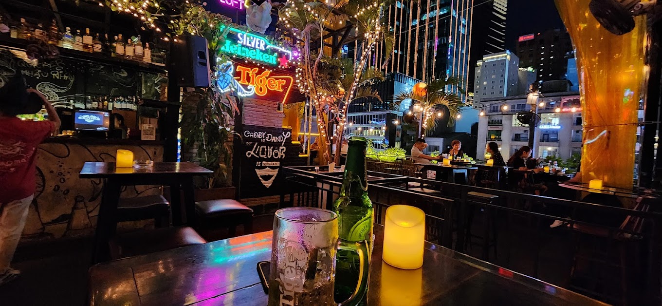 뷰 옥상 바는 사이공 부이 비엔 거리에 있는 가장 높은 건물 중 하나인 듀크 부옹 호텔의 9 층에 위치하고 있습니다. 호치민시에서 가장 저렴한 음료를 제공하기 위해 전 세계 배낭 여행객들이 자주 찾는 곳으로 맥주 한 잔을 즐기고 은행을 깨지 않고도 즐거운 시간을 보낼 수 있습니다.