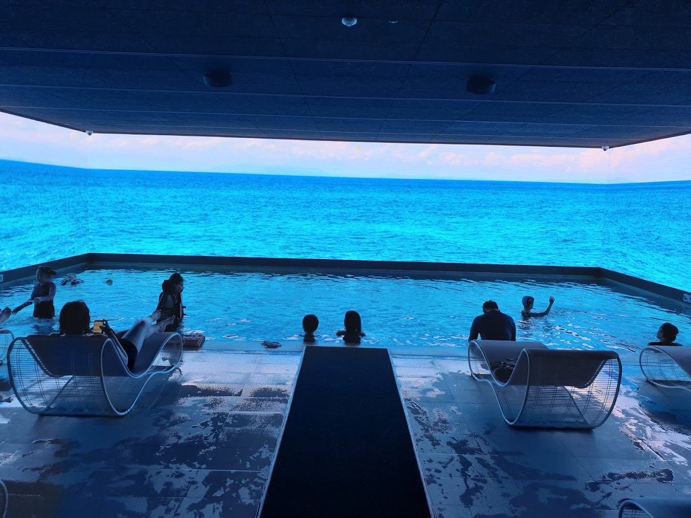 시메르 스파에는 2 개의 인피니티 풀이 있습니다. 실내 인피니티 풀은 물 광장을 내려다보고 있으며,야외 인피니티 풀은 인천시의 탁 트인 전망을 제공합니다. 시머 스파는 인천 공항 근처에 위치하고 있기 때문에 야외 인피니티 풀에서 비행기 착륙을 볼 수 있습니다.