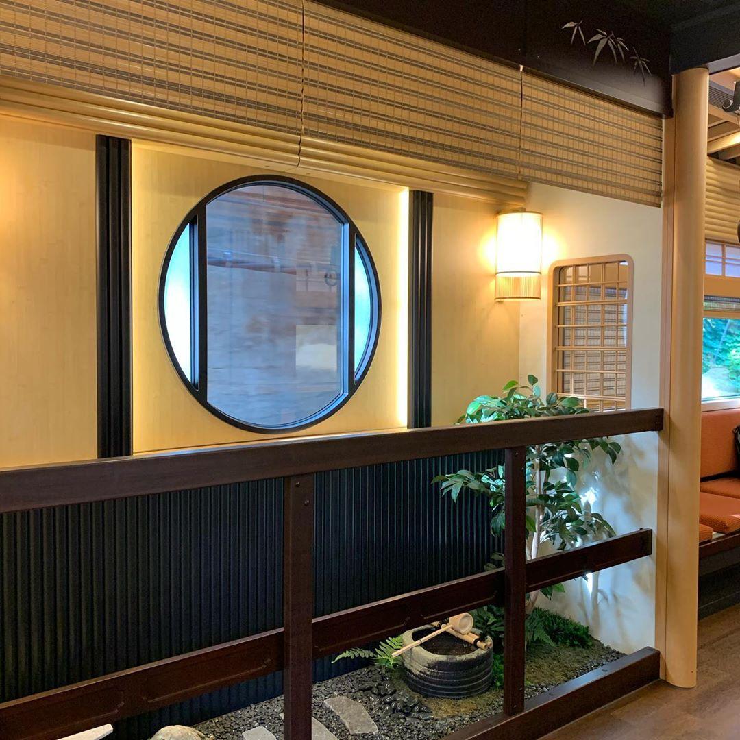 어두운 목재 패널,목판 인쇄 벽지 및 쇼지 스타일의 칸막이를 마차에 기대하십시오. 우메다 역에서 기차를 타면 이미 교토에 있는 것 같은 느낌을 주는 둥근 전망대와 같은 작은 세부 사항도 있습니다.