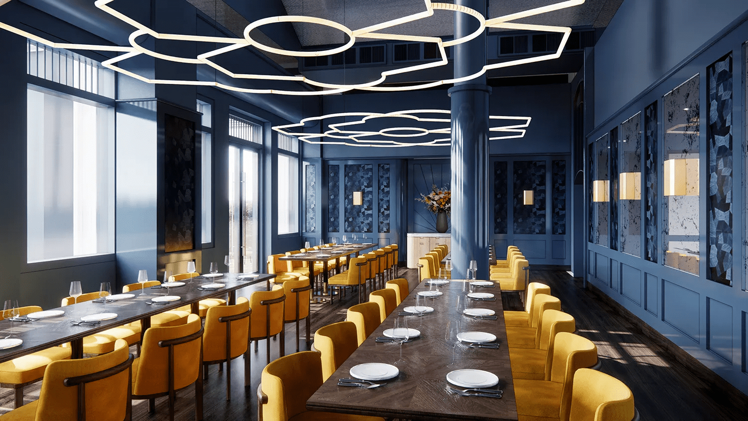내부에는 작은 육각형 타일과 복고풍 의자로 꾸며져 있어 전체적으로 빈티지한 분위기가 물씬 풍깁니다. 간단한 식사를 원하신다면 오픈 카운터에서 다양한 종류의 페이스트리를 확인하실 수 있습니다. 또한 레스토랑의 분주한 주방을 들여다볼 수 있어 셰프들이 분주하게 요리하는 모습을 볼 수 있습니다.