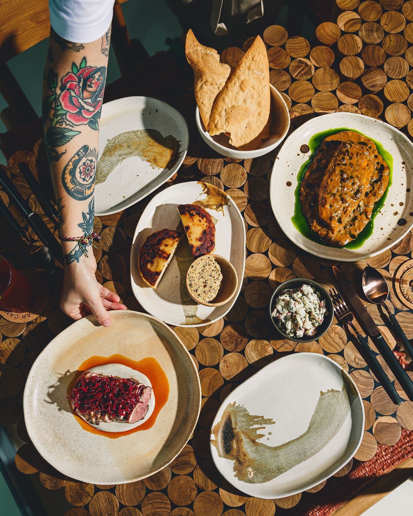 예를 들어 통 산호 그룹 2인 요리($58)를 드셔보세요. 다른 레스토랑에서는 생선 뼈를 아무렇지도 않게 버리지만, 이곳의 셰프들은 대신 압력솥에 넣어 국수로 만드는 방법을 선택했습니다. 흔히 버려지는 생선 머리의 살코기도 파테로 제공되어 이 콘셉트를 더욱 강조합니다.