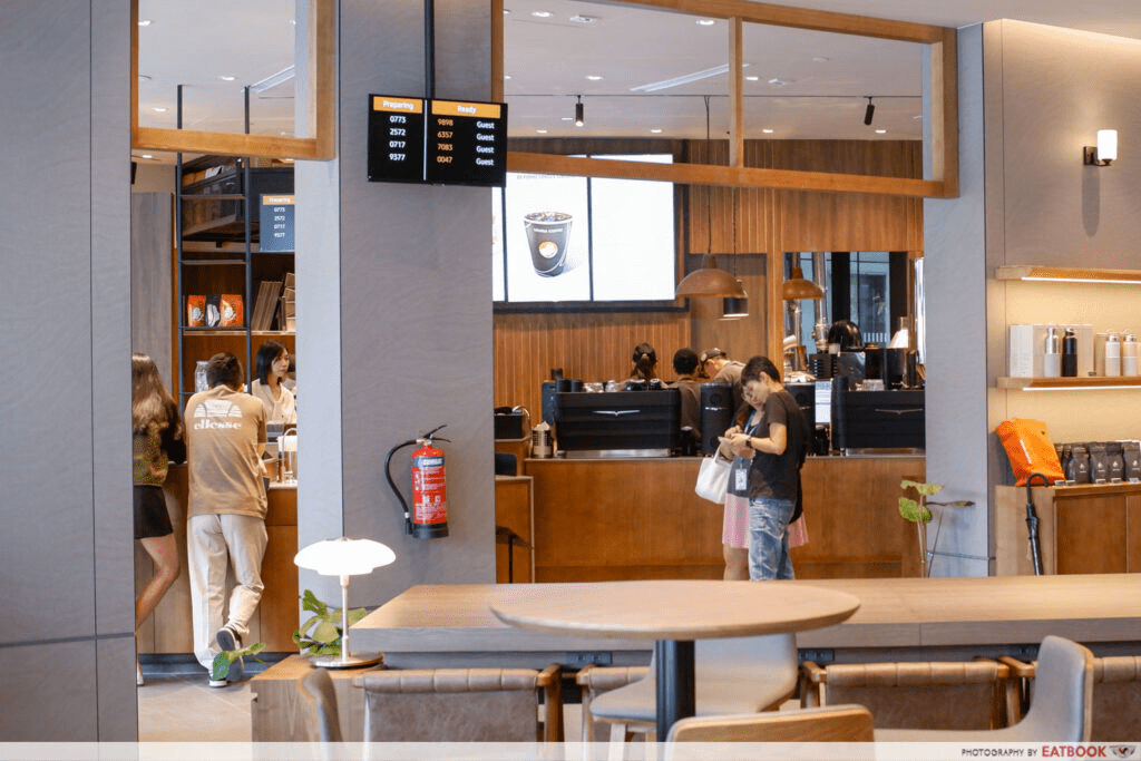 이곳의 좌석은 주로 야외에 있으며, 넓은 녹색 잔디밭과 나무 계단이 있어 350명을 편안하게 수용할 수 있습니다. 2층 시설의 실내 좌석도 마련되어 있습니다. 1층에서는 오픈 키친 덕분에 셰프가 요리하는 모습을 볼 수 있고, 2층의 다이닝 공간은 회사의 R&D 공간 옆에 위치해 있어 곧 출시될 메뉴를 미리 엿볼 수 있습니다.